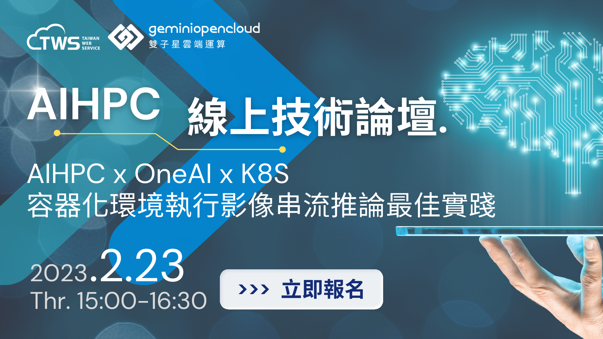 AIHPC x OneAI x K8S,報名 2/23 AIHPC 線上技術論壇,以雲原生推動轉型,縮減團隊 AI 作業流程,驅動產業應用和商機拓展!