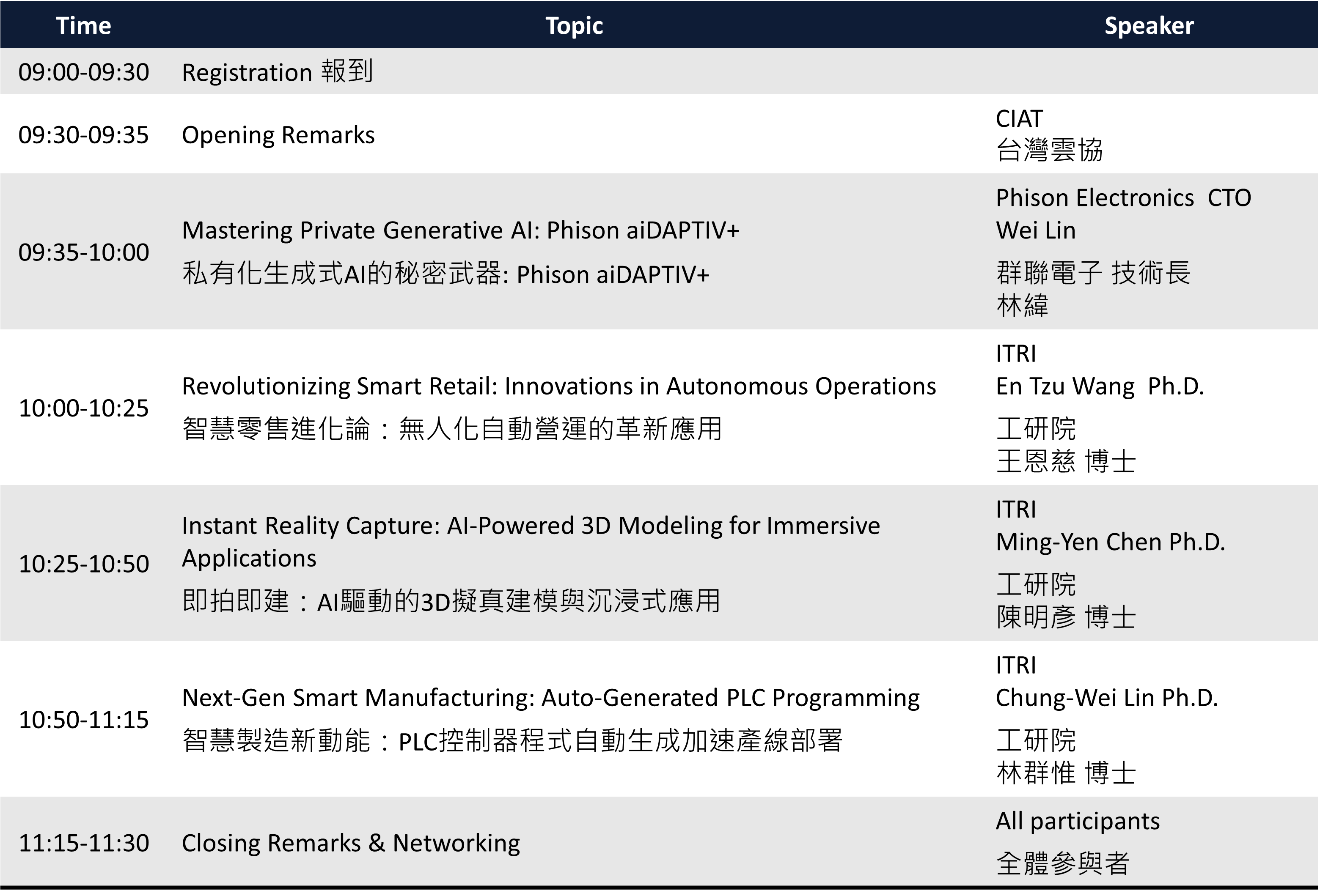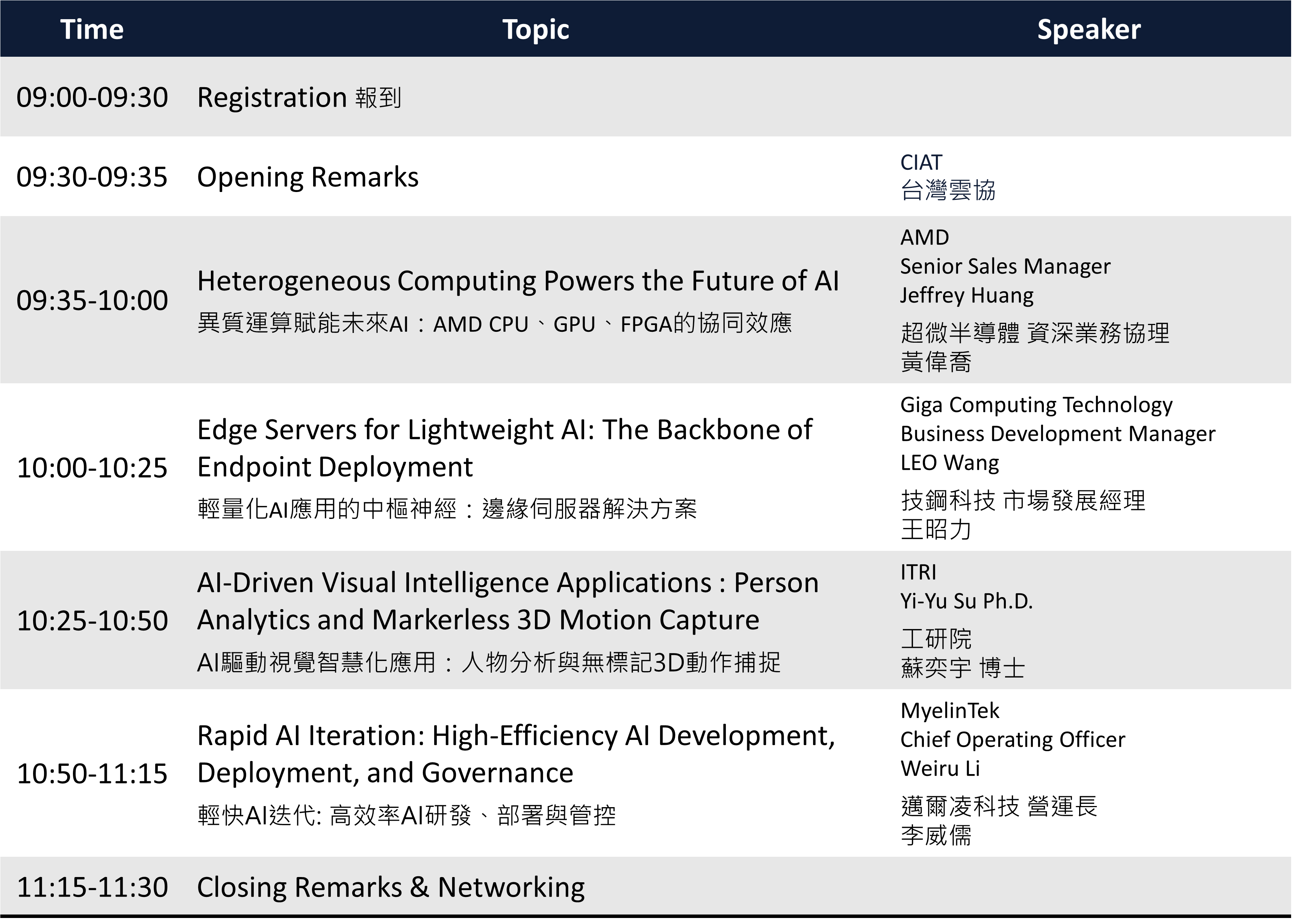 - Subject : Smarter, Faster, Lighter: AI Solutions Shaping the Future 智慧.速度.輕量化:引領未來的 AI 解決方案