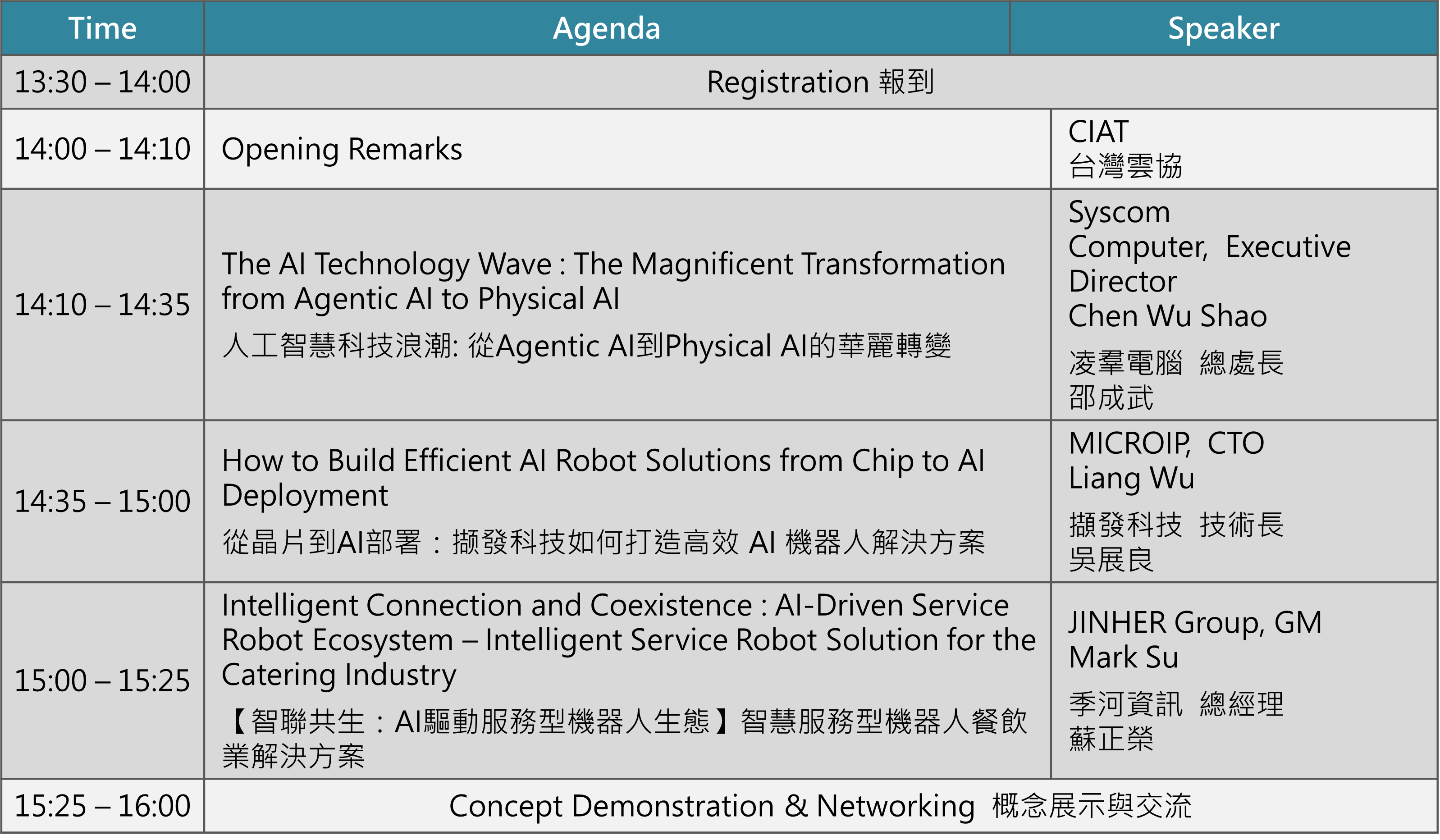 - Agenda 議程:(現場設有服務機器人相關展示)