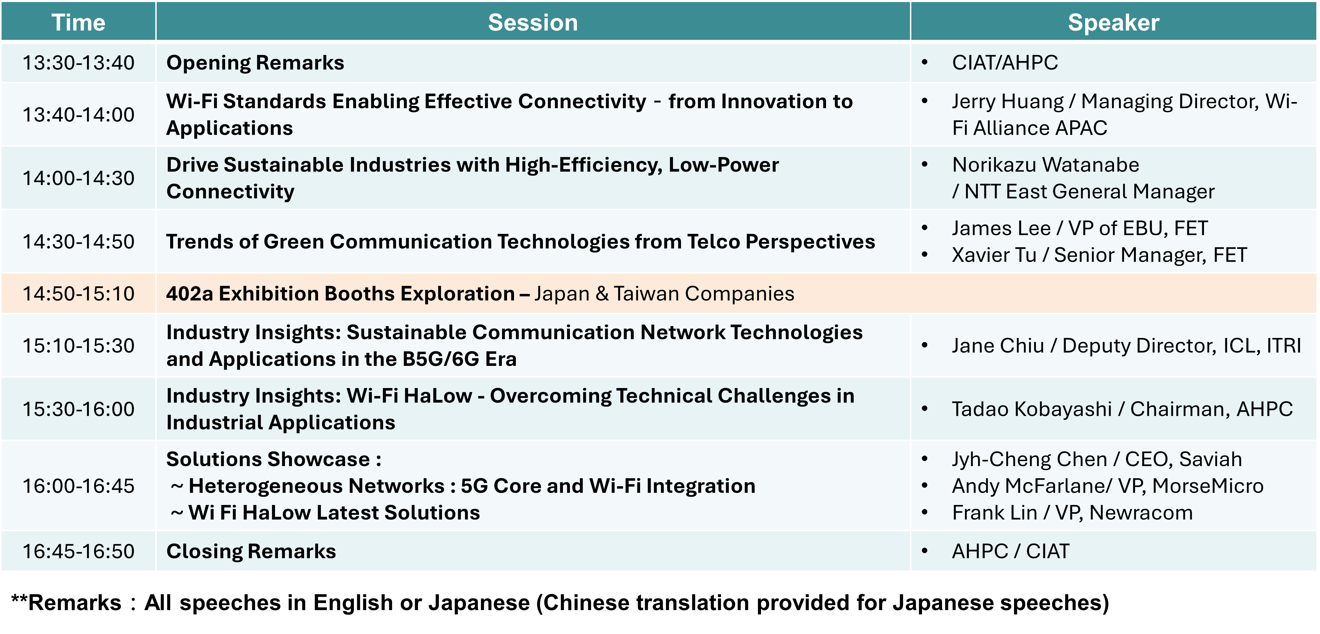 - Organizer:Cloud Computing & IoT Association in Taiwan (CIAT)、AHPC (802.11 ah Promotion Council) in Japan