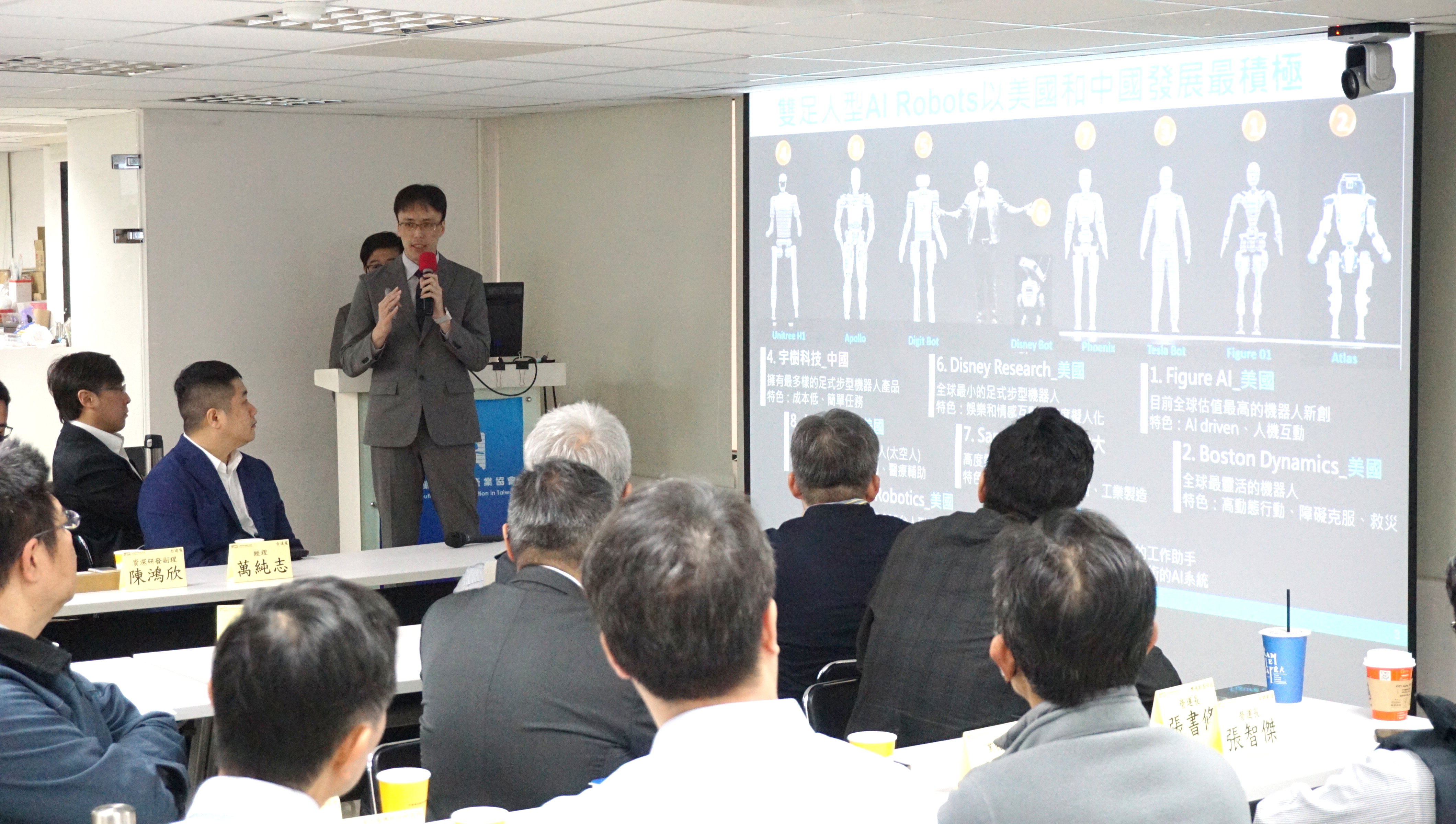 為了讓與會貴賓也掌握來自國際最新趨勢,特邀請工研院產科國際所(IEK)岳俊豪組長以「AI Robots創新趨勢及台灣發展策略」為題,分享今年以來從國際展會所獲的第一手訊息。岳組長點出,人型機器人在技術面待突破的挑戰主要在「大腦」與「小腦」,包含機器人與AI的整合,以及發展能賦予其擁有具身智慧(Embodied Intelligence)的大行為模型,將是決定機器人終能協助人類工作任務的關鍵。而台灣雖然尚未有人型或足式機器人產品研發,不過因具備精密機械產業基礎,再加值以ICT產業發展AI的優勢,要構築機器人產業,潛力可期。