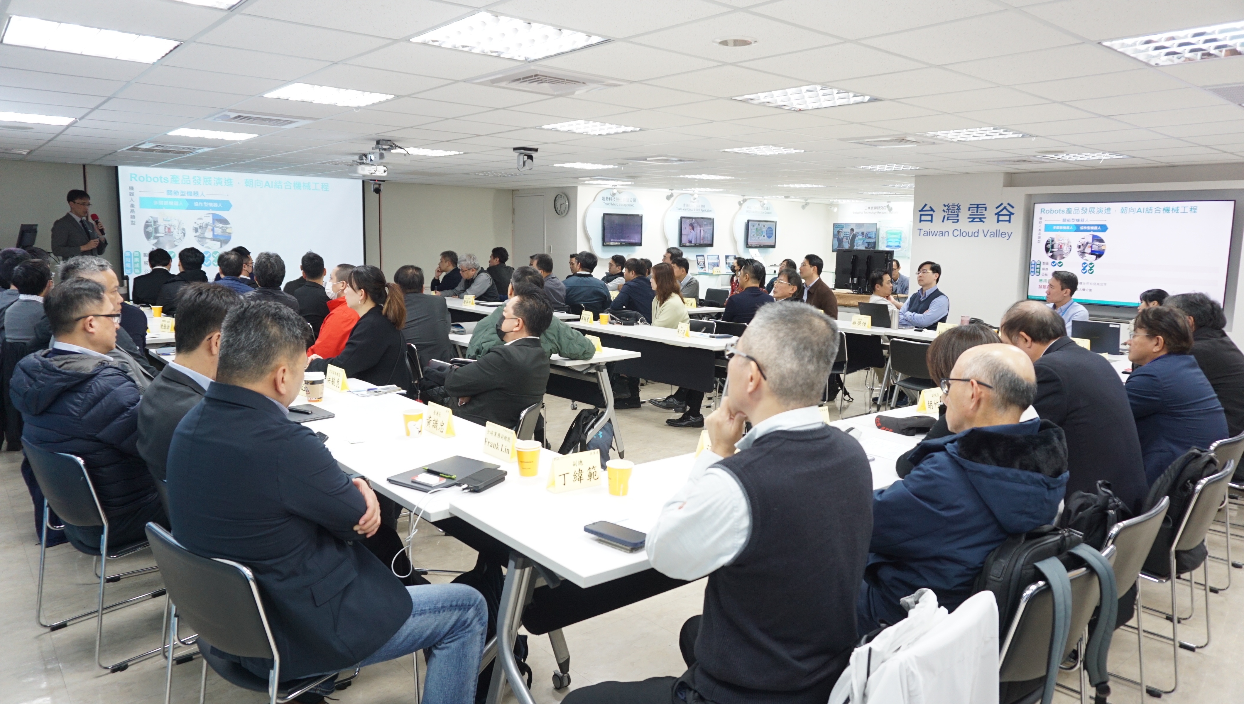 交流首先由雲協徐銘宏執秘分享籌組成立「人型機器人SIG」的初衷、構想以及目的,背景主著是眼於AI技術促成機器人行為大躍進,背後的大行為模型(LBM)須結合雲端與邊緣運算,有龐大的算力需求;另一方面,因應百工百業不同應用場景服務要求,人型機器人須高度的精密機械與ICT技術軟硬整合,這些都將是雲協會員廠商投入機器人產業的契機。SIG的目標將促成機器人(端)和AI技術(雲)的軟硬整合與互補開發,讓機器人更多才多藝,並推動建置雲端物聯網試驗場域,促成台灣具“感知、決策、執行”能力的機器人生態鏈發展。