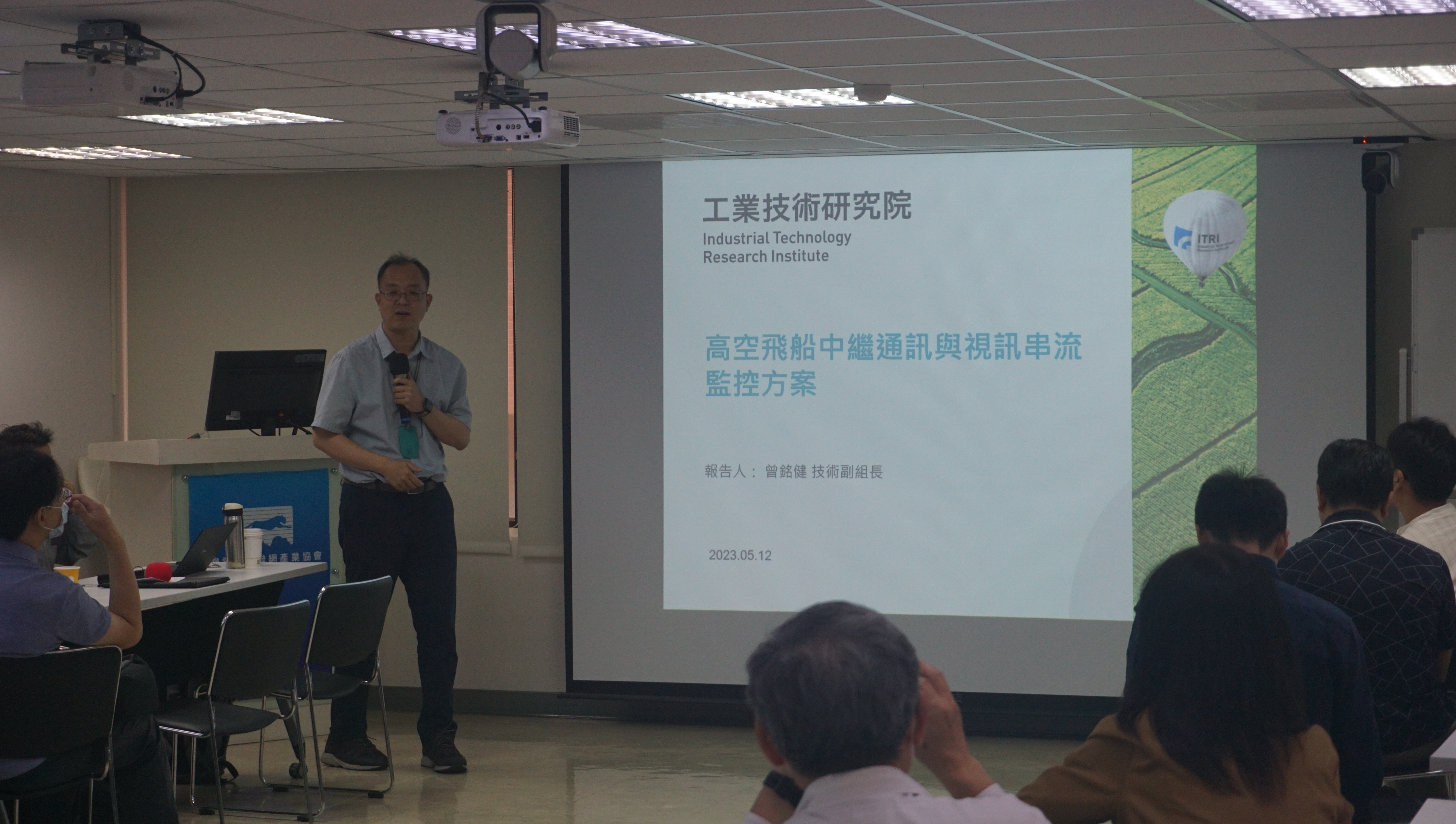 由於一般人對飛船比較感到陌生,本次活動最引起與會先進好奇的,就是由工研院資通所曾銘健技術副組長講解之高空飛船中繼通訊與視覺監控方案。曾副組長介紹飛船的種類、特性,說明了高空飛船其實應用很廣泛,可做高空通訊中繼站、透過影像串流進行視訊環景監控、運輸觀光及訊號驗測等功能,也可於戰時或災難時提供通訊覆蓋。由於造價較高,初期可能政府公部門應用機會較大,未來將逐漸出現商業性應用。