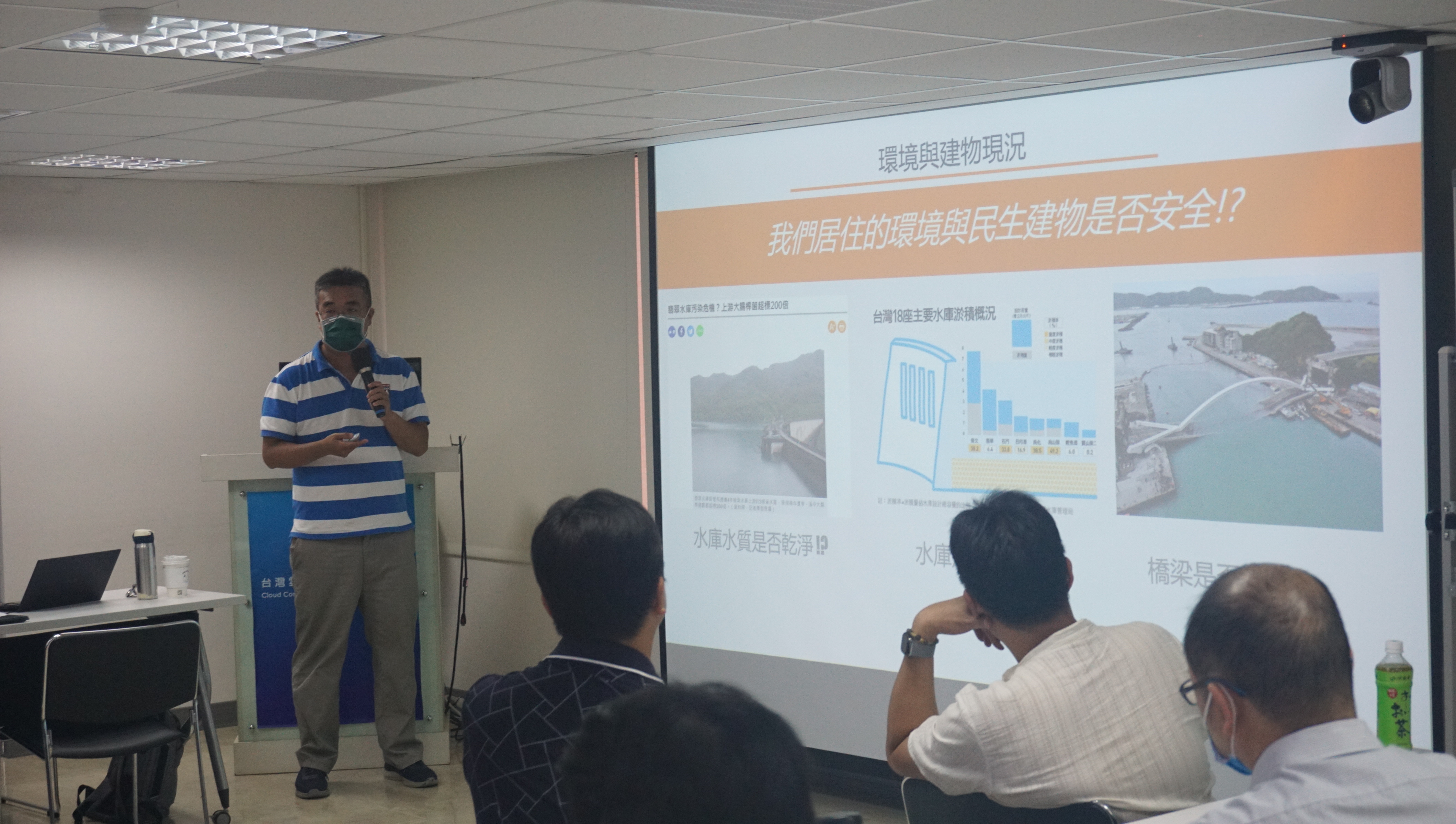 鎮鑫科技郭鎮銘執行長向與會先進介紹無人船、無人潛艇及水下檢測技術。水庫及港口之水深、水質、結構物之檢測,若由人工處理將耗時費力,目前已發展無人水下檢測系統,可搭載聲納量測水深及油汙,大幅節省人力工時,又可以影像修正技術,在水下快速取得較清晰之修正影像,提升影像的可研判性。近年來台灣缺工情形惡化,無人船、無人潛艇搭配水下檢測技術將是輔助人力探勘水質水深之新興方案。