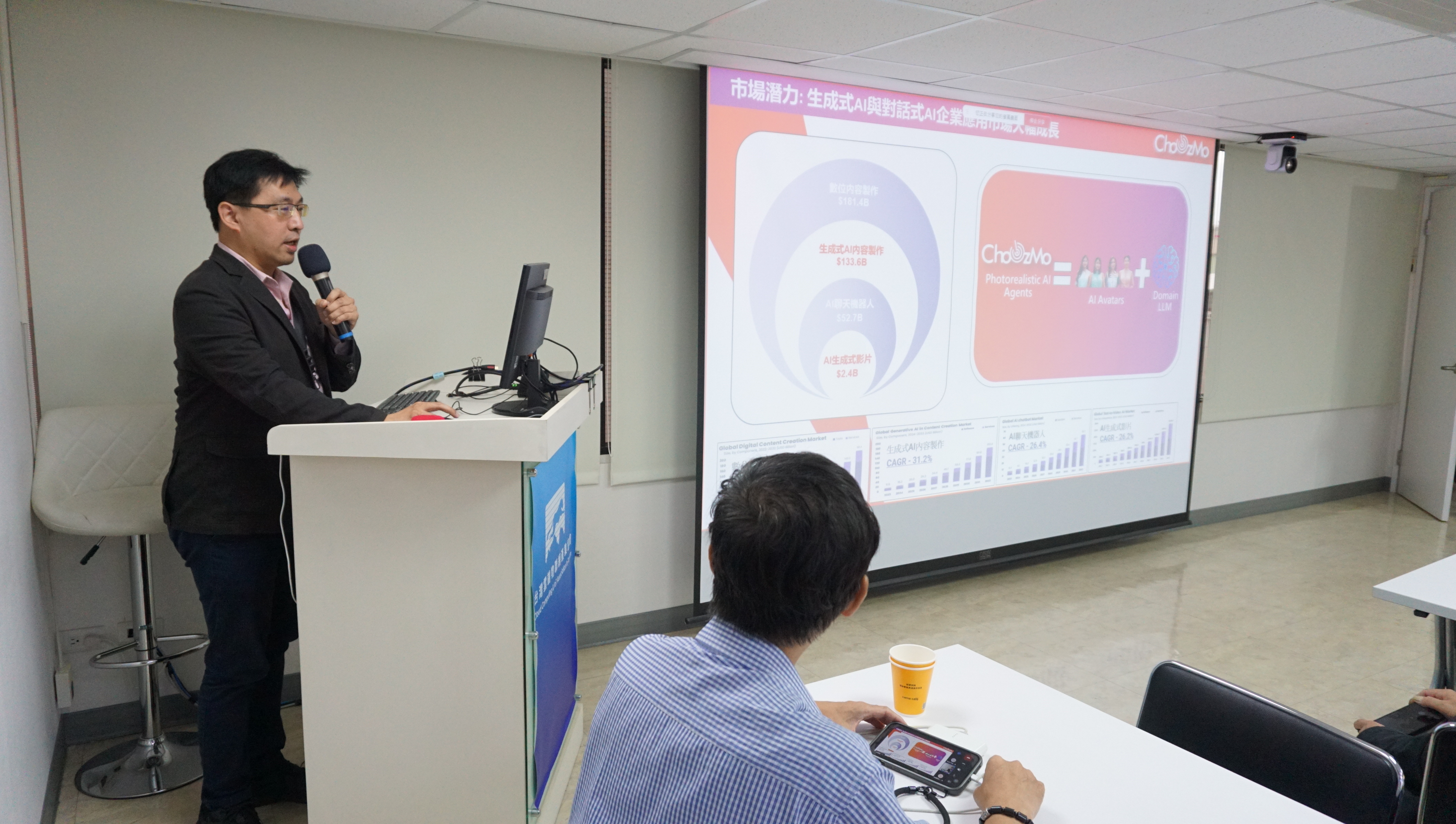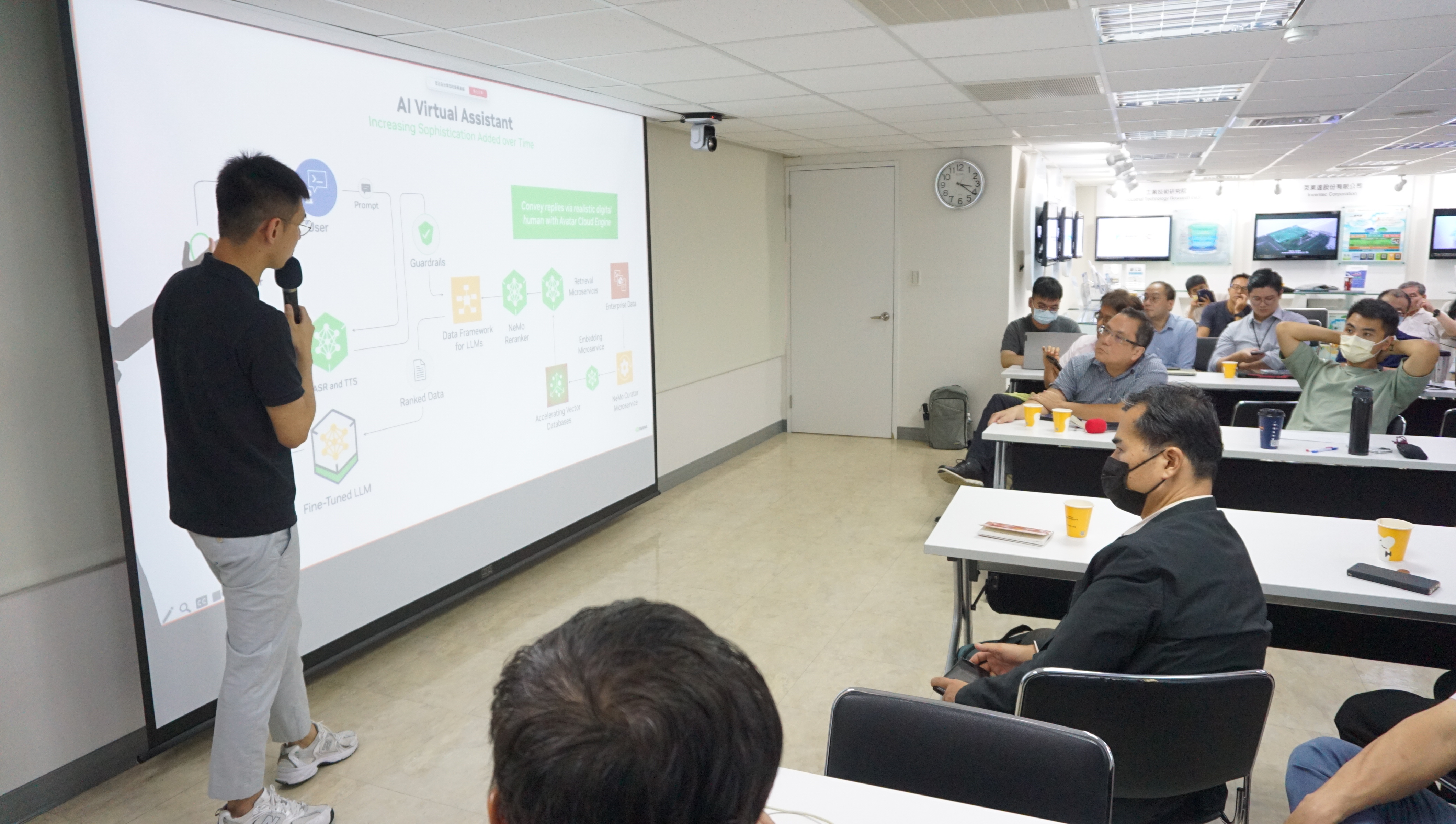 除了技術內容的論壇,XR SIG也邀請到雲豹育成新創公司分享應用案例,數位無限軟體執行長分享如何建構高效的AI算力中心。他強調,一個完善的AI算力中心,不僅能加速AI模型訓練,也能降低運營成本。而集仕多創辦人梁哲瑋則分享了AI虛擬人在影音應用上的實際案例,展示了AI如何為內容創作帶來全新的可能性。