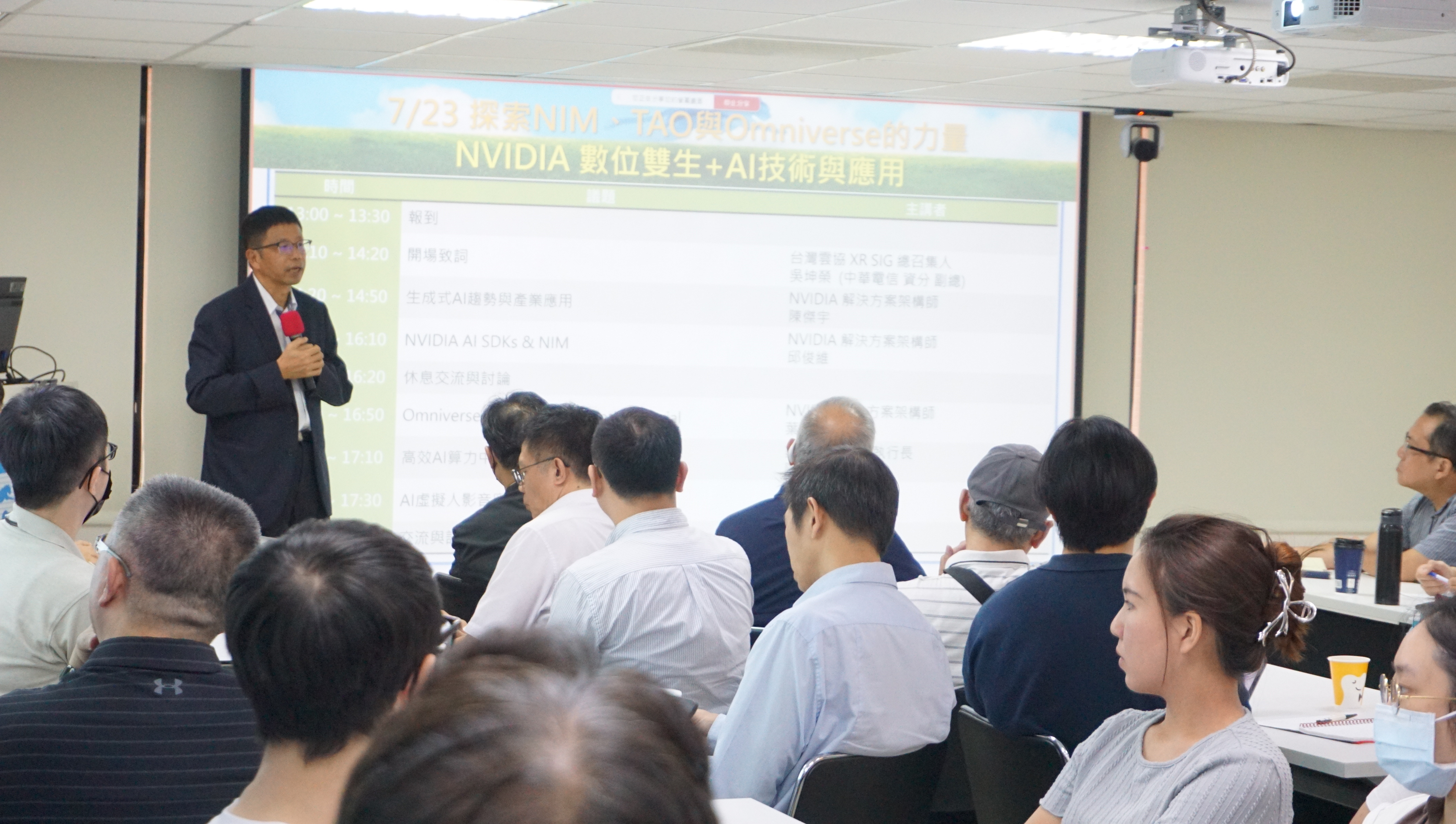 2024年7月23日,台灣雲協XR SIG舉辦的「NVIDIA 數位雙生+AI技術與應用」研討會圓滿落幕。本次活動吸引了近90位產業界人士參與,共同探討生成式AI在各產業的應用潛力。