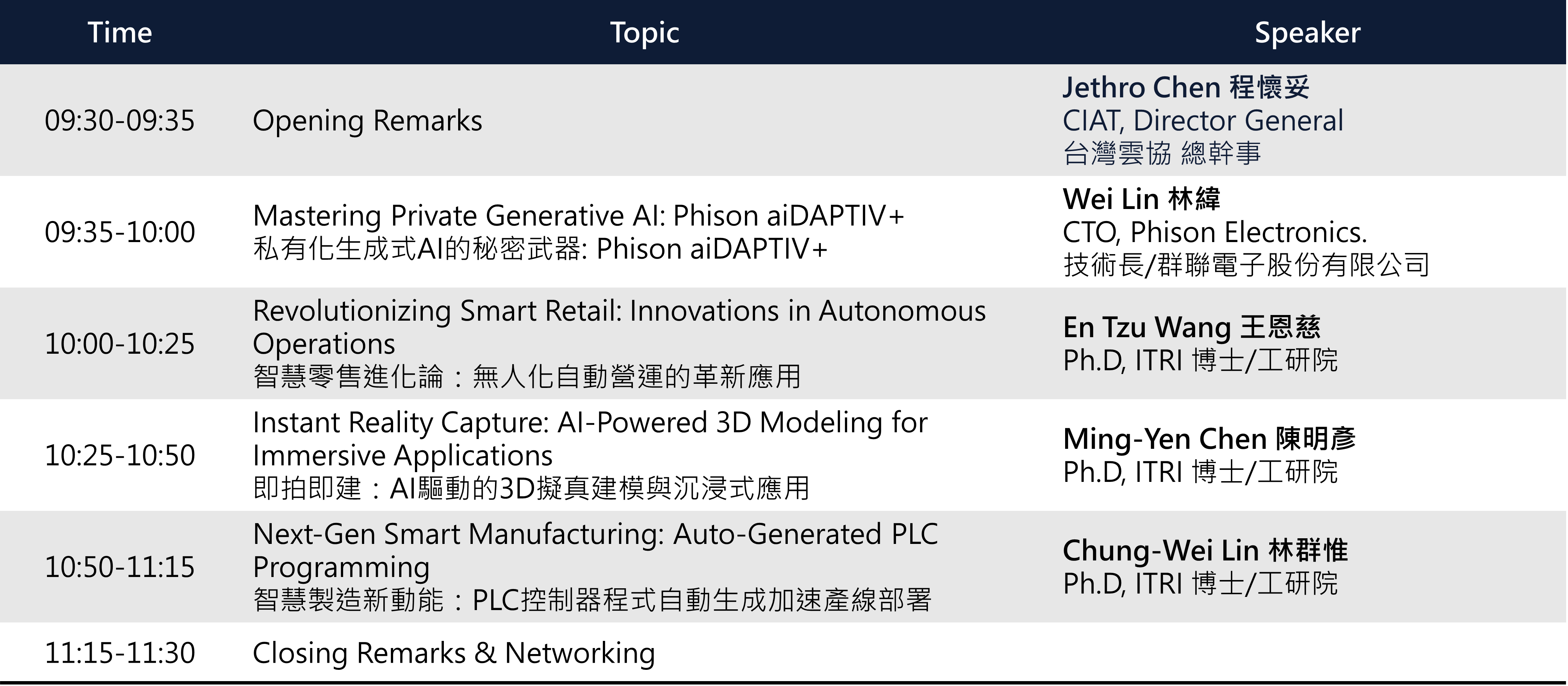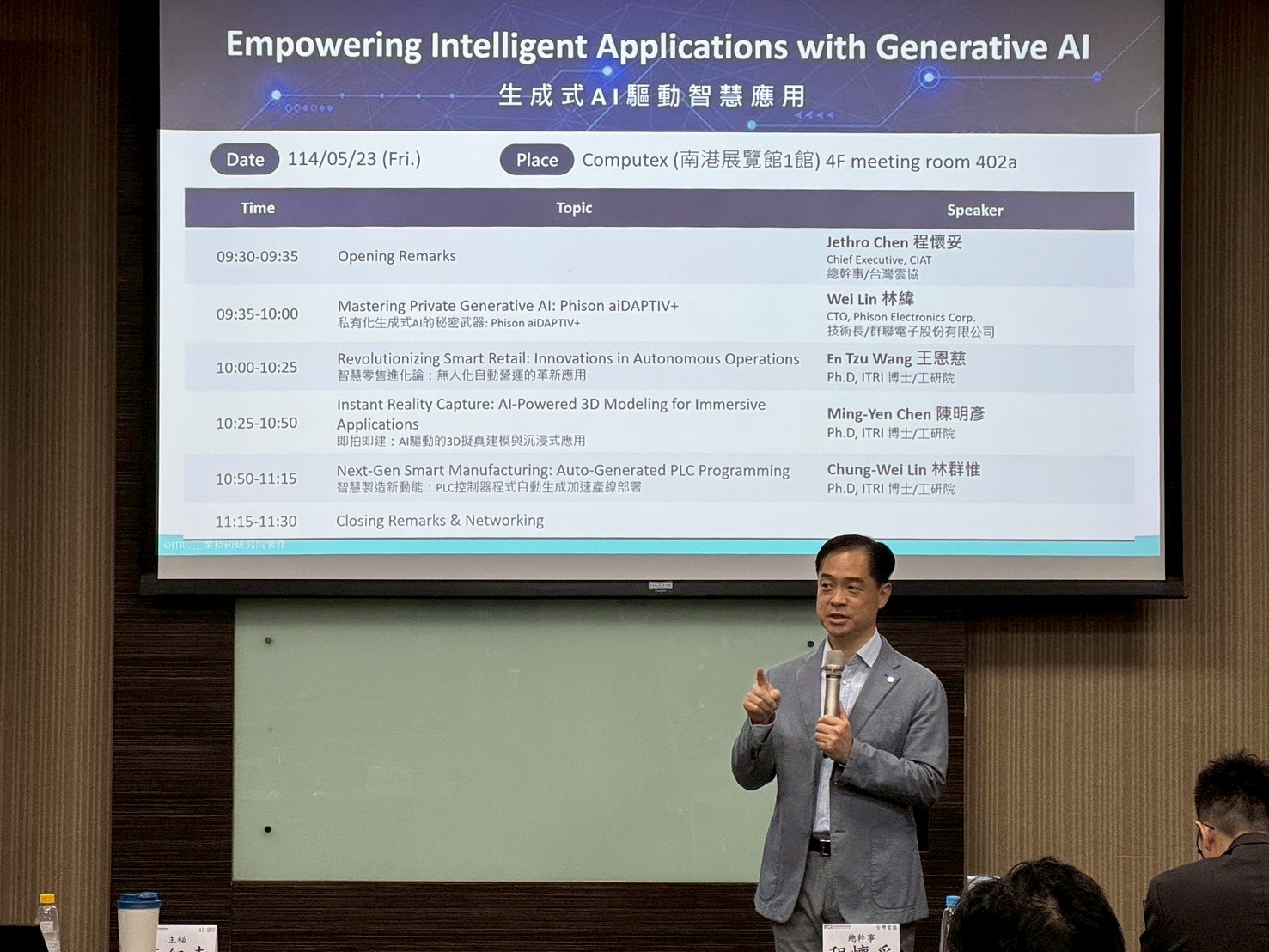 最後,由工研院資通所技術副組長林群惟重磅壓軸,以「智慧製造新動能:PLC控制器程式自動生成加速產線部署」為主題,分享AI在產線自動化的應用演進。他指出,製造業數據資料量小且多涉及機密,導致資料上雲困難,成為智慧化瓶頸。透過AI資料擴增與PLC控制器程式自動生成,能有效解決產線自動化痛點。 PLC控制器是智慧工廠機台核心,然而程式撰寫仰賴經驗工程師,培養週期長、人力有限,透過可信賴的AI模型自動生成PLC控制程式,不僅助力PLC供應商升級軟體,也降低SI廠商與終端用戶負擔,實現三贏局面。他強調,未來將持續透過模型在地化與Fine-tune機制,協助台灣製造業突破瓶頸,推動智慧轉型,為傳統產業帶來新動能。 生成式AI掀起的技術革新浪潮,正加速改寫各行各業的營運模式與市場競爭格局。本次論壇精彩匯聚產業AI實戰經驗,帶領與會者洞悉未來趨勢、啟發創新思維,並分享前瞻解決方案。展望未來,生成式AI技術與智慧應用將持續深化,台灣產業將有更多數位轉型與智慧營運的新機會。