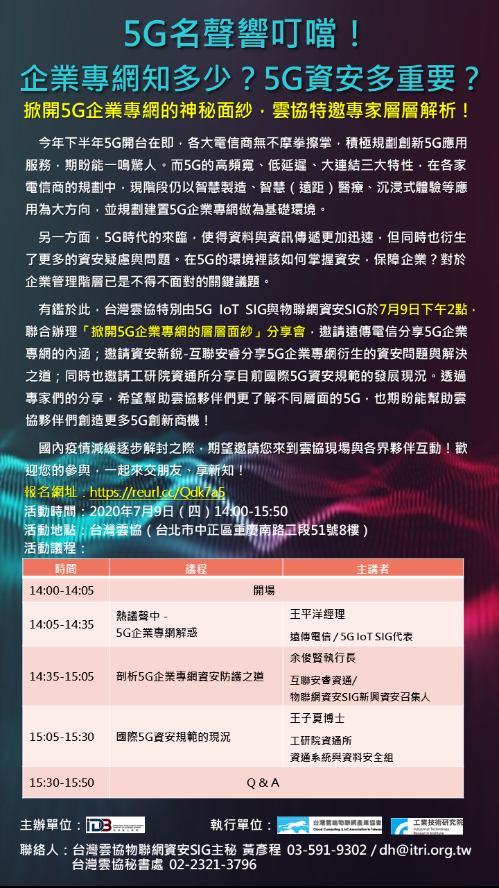 7/9 企業專網知多少?5G資安多重要?「掀開5G企業專網的層層面紗」分享會